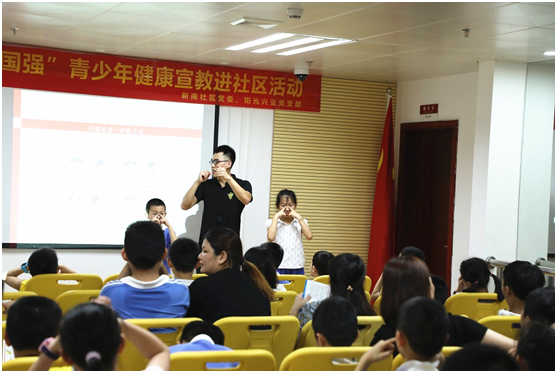 少年强则国强:新南社区党委联合阳光兴亚党支部开展青少年健康宣教活动导语:数据显示,中国青少年体质已连续25年持续下降,中国男孩的平价身高比邻国日本矮2.5厘米;2018年我国青少年近视率为53%,高中生的近视率高达81%;中国青少年肥胖率高达12%;50%以上的孩子存在不同程度的驼背和姿态不良;青少年对运动的兴趣排在游戏和音乐之后。种种数据表明,我国青少年体质问题已非常严重,亟待解决。