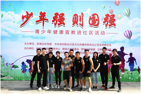 2019年5月18日上午,由深圳市新南社区党委联合深圳阳光兴亚文化传播有限责任公司党支部主办,新南社区党群服务中心等单位协办的“少年强则国强”青少年健康宣教进社区活动,在创意文化广场顺利举办。